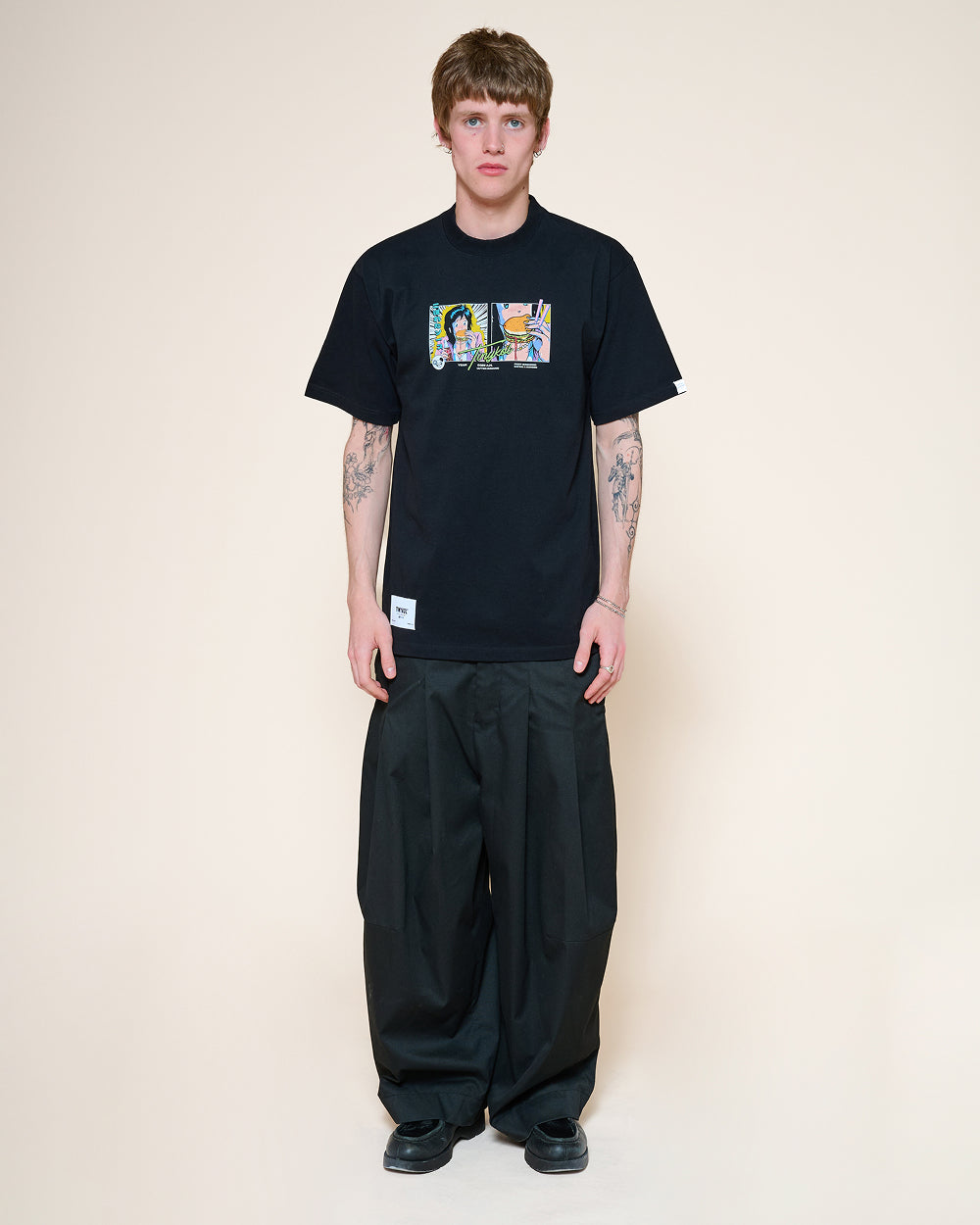 COMPOSITION:100% combed cotton – 275 gsm FIT:Slightly oversized unisex fitModel is 183 cm and wears size M TECHNICAL DETAILS:DTF print, Rubber label detailing, Pip label on sleeve, Woven hem label RESPONSIBLY MADE:Produced ethically under safe and fair working conditions ARTWORK & HUMAN TOUCH:Hand-illustrated, designed, and creatively directed by a real human